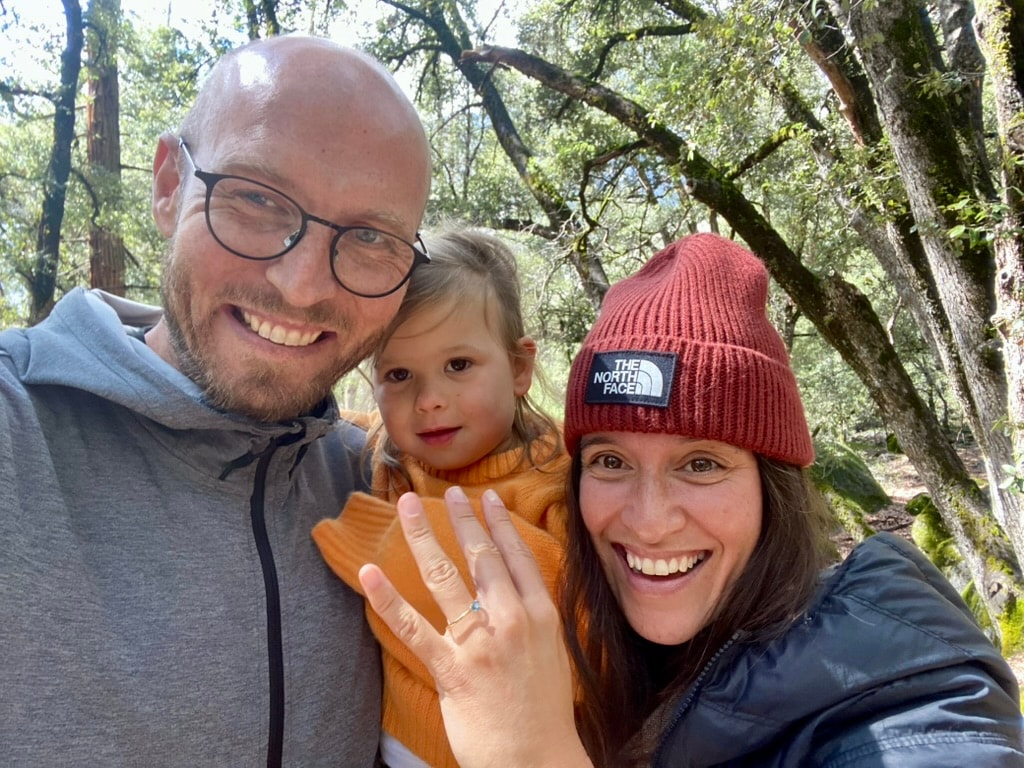 Eddie vroeg Annie net iets eerder ten huwelijk en ging op één knie in Yosemite. Nog steeds trillend, net nadat ze beren voorbij zagen lopen, zei Anne JA!! Op dat moment bekende Anne dat ook zij een ring had meegenomen! Echt waar!
